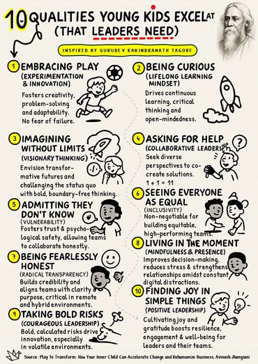 Play to Transform is a book that challenges the traditional mindset of business leaders and encourages them to tap into their inner child to accelerate transformation with purpose.